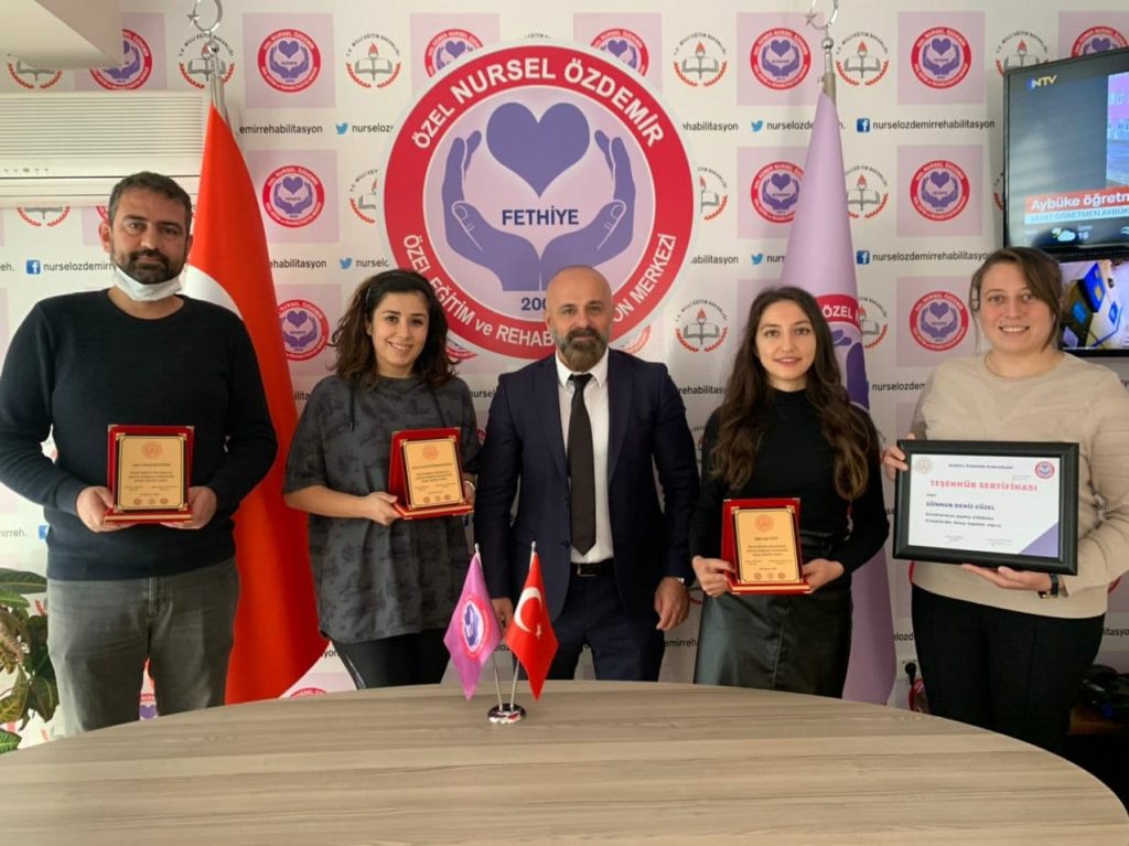 Kemer Nursel kurumumuzda ve merkez kurumumuzda bizlerle çalışan özel eğitimin Fethiyede ki en eski yüzlerinden olan tecrübeli öğretmenimiz Cüneyt KURTOĞLU’ na plaketi kurucumuz tarafından verildi. Kurumlarımız bünyesinde en yetenekli abimiz olan, eğitime gönül vermiş tecrübeli mesai arkadaşımız Sait ESER’ e de kurucumuz Salih DÜNDAR tarafından plaketi verildi. Kurum psikoloğumuz Günnur Deniz GÜZEL’ in de başarılı çalışmalarından dolayı teşekkür sertifikası verildi.