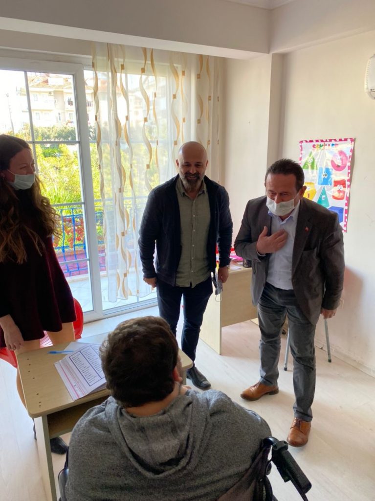 3 Aralik Dünya Engelliler Gününde Ak Parti İlçe başkanı Turgay Öztürk ve yönetim kurulu üyeleri kurumlarımızı ziyaret etti. Kurucumuz Salih Dündar ‘ında başkan yardımcılıgı yaptığı Fethiye Ak Parti ilçe teşkılatı bu anlamlı günde engelli öğrencilerimizle bir araya gelerek onlarin yaninda oldugunu birkez daha gösterdi. Öğrencilerimize hediyeler takdim eden başkan Öztürk, kurumlarımızda verilen eğitim hizmetinide yerinde gördü. Kurum öğrencilerimizde yaptiklari el emeklerini onlari bu anlamli gunde onlari yanliz birakmayan ziyaretcilerine verdiler.