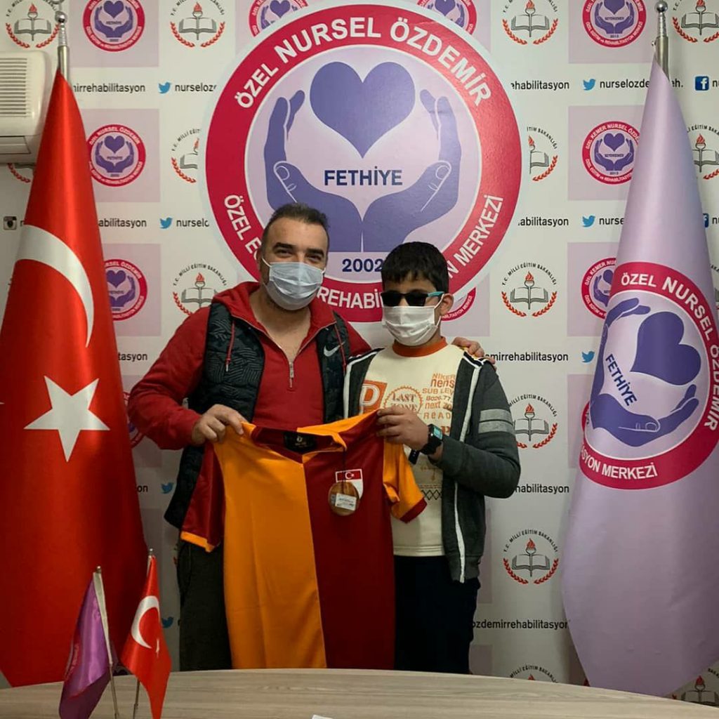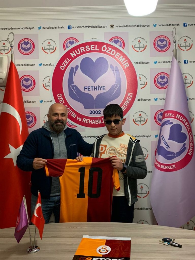 Fethiye Galatasaray Taraftarlar Derneği başkanı Emrecan ARIKAN, Fethiye Galatasaray Taraftarlar Derneği yönetim kurulu üyesi Yusuf ÖZKAYA kurucumuz aynı zamanda Fethiye Galatasaray Taraftarlar Derneği yönetim kurulu üyesi Salih DÜNDAR uzun yıllardır görme engelliler destek egitim programından egitim gören öğrencimiz Semih KARCI için bir araya geldi. Galatasaray aşığı, hicbir maçı kaçırmayan, bütün futbolcuları tanıyan Semih için 10 numara galatasaray forması hediye edildi. Dernek başkanı ve üyeleriyle olmaktan mutluluk duyan Semih forma için teşekkür etti.